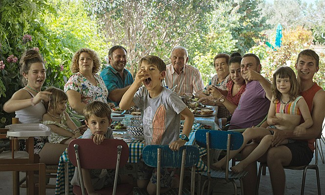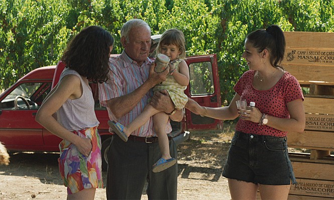 Meanwhile, the screenplay by Simón and her co-writer Arnau Vilaró also pays some attention to the kids of Quimet and one of Quimet’s younger sisters. Often oblivious to what is happening around her, Quimet’s little daughter Iris (Ainet Jounou) always looks for any opportunity for fun along with her twin cousins, and this sometimes annoys Quimet a lot, but he usually tolerates them nonetheless just like his aging father and the other adults in the family. At one point, the kids hold a little entertainment show for the whole family, and the other family members sincerely encourage them to do more, especially when Iris sings a song which her loving grandfather taught before.