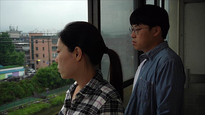 The early part of the film gradually establishes how Yeong-tae (Park Song-yeol) and Jeong-hee (Won Hyang-ra) live day by day in their small residence. While Jeong-hee is a schoolteacher currently unemployed, Yeong-tae has earned their meager living via a part-time driving service job, but things do not look bad for them because they are still happy to be together even while recognizing their economic hardship at present.