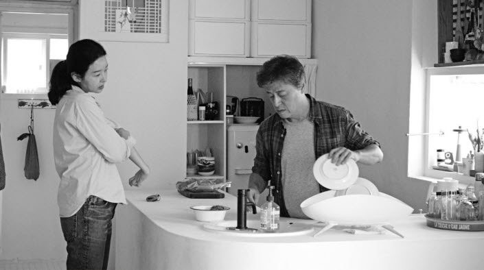 In the beginning, the movie opens with of a middle-aged filmmaker named Byeong-soo (Kwon Hae-hyo) and his young adult daughter Jeong-soo (Park Mi-so) arriving at one four-story building located somewhere in Seoul. The building belongs to a middle-aged woman named Hae-ok (Lee Hye-young), and, as an old friend of his, Hae-ok gladly shows him and his daughter here and there in the building after meeting them in front of the building.