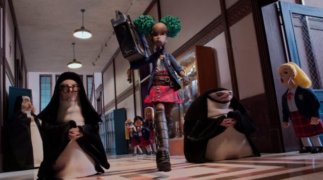 After her parents’ death, Kat were moved around here and there outside Rust Bank without anyone to lean on, and then she is sent back to an all-girl Catholic dormitory school in Rust Bank as a part of its rehabilitation program funded by some wealthy local couple. Right from her first day, she surely shows others around her that she is not someone who will get along well with them, but then she comes to befriend Raúl Cocolotl (voiced by Sam Zelaya) a bit because, well, he is a loner just like her as a trans kid (The level of diversity shown from the characters of the film will put many of recent American major animation films to shame, by the way).