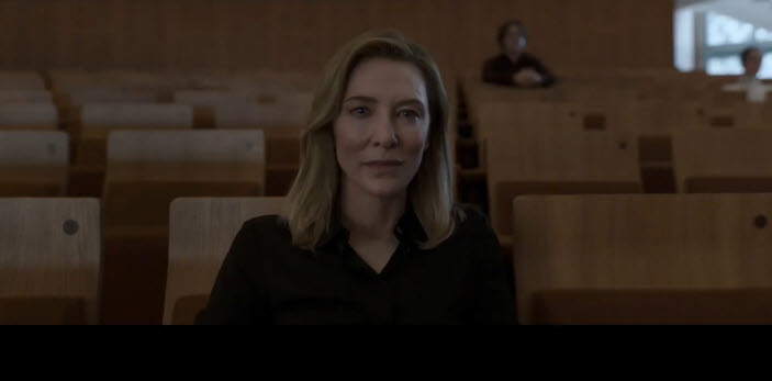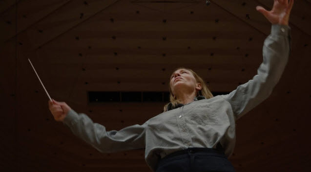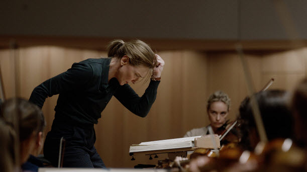 During the opening part featuring a public interview by Adam Gopnick, the movie succinctly establishes its heroine’s legendary status in her artistic field. As a world-famous female composer-conductor who is also the principal conductor of the Berlin Philharmonic Orchestra at present, Lydia Tár (Cate Blanchett) has been simply peerless for her very distinguished professional career. As mentioned by Gopnick himself, she has garnered many various industry awards including Emmy, Grammy, Oscar, and Tony, and she is now approaching to another highlight in her long and illustrious career as preparing for the live recording of one of Gustav Mahler’s symphonies along with her orchestra.
