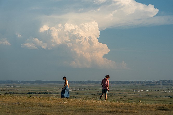 In the meantime, the movie allows them to have some quiet peace as they drive by one wide landscape after another, and that may take you back to those lyrical moments of Terrence Malick’s “Badlands” (1973), which is also about one dangerous young couple wandering here and there among vast landscapes. Along with his cinematographer Arseni Khachaturan, Guadagnino, who is no stranger to visual lyricism as shown from his previous films “I Am Love” (2009) and “Call Me by Your Name” (2017), vividly presents a series of stunning landscape shots on the screen, and that further accentuates how desperately Maren and Lee hold each other in their isolated status.