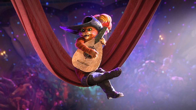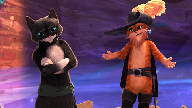Of course, things soon turn out to be a bit more complicated than our furry hero expected at first. It seems that all he will have to do is stealing the map from one certain greedy industrial figure, but this loathsome figure also wants to locate that star for his megalomaniac ambition. In addition, our furry hero also comes across Kitty Softpaws (voiced by Salma Hayek Pinault), another outlaw cat who was once very close to him and is also quite willing to get the map by any means necessary for her little personal purpose.