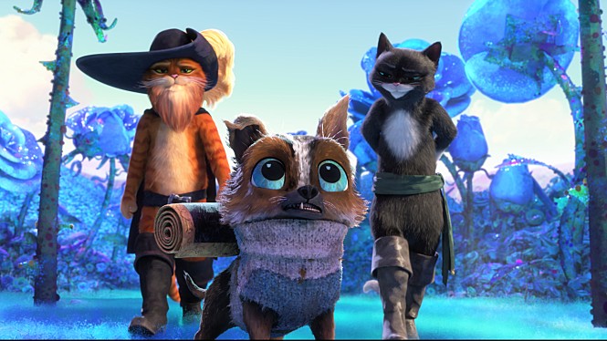 For some time, the situation does not look that bad for our furry hero once he gets accustomed to the mundane (and mindless) daily life of a pet cat, but, of course, there eventually comes an opportunity for adventure he cannot possibly resist. It turns out that Goldilocks (voiced by Florence Pugh) and her trio of bears are looking for his little criminal service, and their ultimate goal, a big star hidden somewhere inside a dangerous magic forest, may get our furry hero to have extra lives. Naturally, he quickly embarks on acquiring the magic map which will lead him to that big star, and he also happens to be accompanied with Perrito (voiced by Harvey Guillén), a little happy-go-lucky dog who has disguised himself as a cat for his practical survival.
