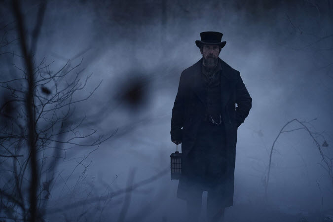 In the meantime, the screenplay by director/writer/co-producer Scott Cooper, which is based on the novel of the same name by Louis Bayard, focuses on a bit of romance between Poe and a beautiful young woman who happens to be the daughter of the academy doctor. As getting to know her and her family more, Poe comes to have some understandable suspicion, but he cannot help but attracted to her as they recognize a sort of kinship between them as two differently melancholic souls, and there is a little tender moment when he recites a bit of one of his latest poems to her at one point.