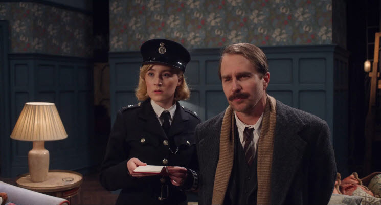 Shortly after he is eventually murdered by someone, Köpernick’s dead body is found right on the set of “The Mousetrap” in the Ambassador Theater where the play was recently celebrated for its 100th performance. Naturally, everyone involved with Köpernick is a prime suspect to watch, and Inspector Stoppard (Sam Rockwell), who is accompanied with Constable Stalker (Saoirse Ronan), wants to shut down the production at least for a while, though that turns out to be impossible due to the increasing popularity of the play as well as Christie herself, who has been very fierce about protecting anything involved with her works for good reasons.