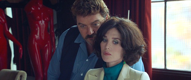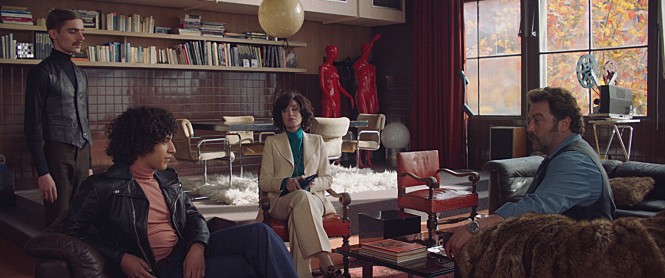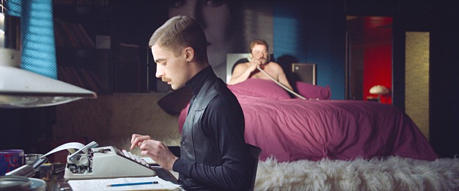 Like the 1972 film, the movie is mainly set in the residence/workplace of its central character, but there are some significant differences in terms of character. In contrast to the titular lesbian fashion designer heroine of the 1972 film, Ozon’s screenplay has a gay filmmaker named Peter von Kant (Denis Ménochet) as its central character, and, not so surprisingly, von Kant’s appearance and attire in the film evoke a lot of Fassbinder’s public images right from the beginning.