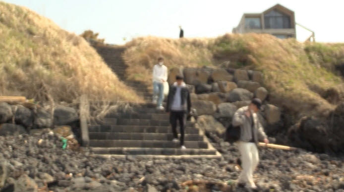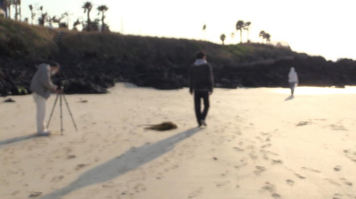 Come to think of it, I doubt whether there is any substantial story or character in the film from the beginning, because the movie feels like the tepidly extended version of a short film already deficient in terms of story and characters. At the beginning, we are introduced to two lads and a young woman who are working together for a little short film project of theirs in Jeju Island, but we do not know what the hell they are really making, because they still do not have any clear idea on what they are making at present.
