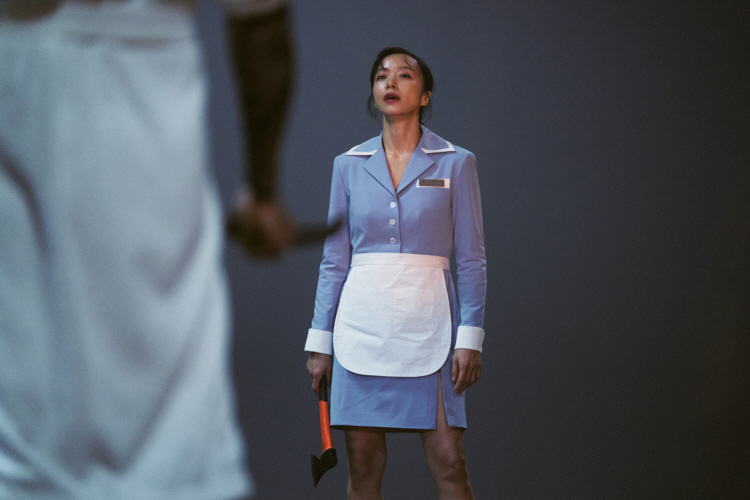 Anyway, the main cast members of the film play straight to their materials for generating some amusement for us. Jeon Do-yeon, who has been mainly known for winning the Best Actress Award at the Cannes Film Festival for “Secret Sunshine” (2007), deftly handles a number of juicy comic moments besides looking credible in several key action scenes, and Sol Kyung-gu, who previously collaborated with Byun in “The Merciless” (2017) and “Kingmaker” (2022), is effective as Jeon’s counterpart as having his own deadpan comic moments. Although they are stuck in thankless supporting roles, Esom, who was unforgettable in “Microhabitat” (2018), Kim Si-a (Remember that little girl in “Miss Baek” (2018)?), and Koo Kyo-hwan manage to leave some impression at least, and I was also amused by the cameo appearance of a certain well-known South Korea actor during the opening scene.