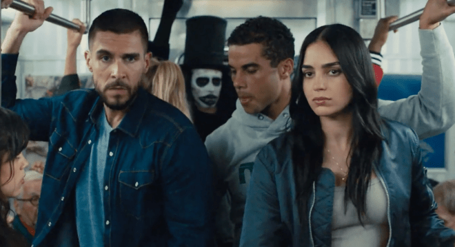 Anyway, Ghostface soon begins to strike upon Samantha and Tara and several other people associated with him, and directors Matt Bettinelli-Olpin and Tyler Gillett, who also directed the previous film, serves us a number of intense moments as Samantha and Tara desperately try to survive and clear their name. At one point, we get a terrifying scene where Samantha and Tara try to evade their opponent in an empty convenient store, and the movie later gives us a suspenseful subway scene which places many Ghostfaces around several main characters for more dread and confusion.
