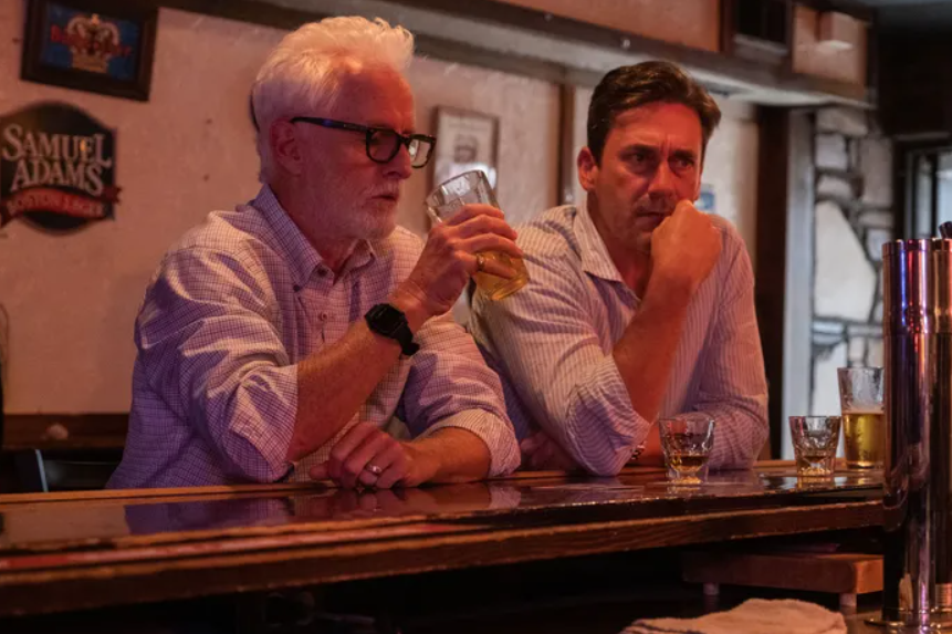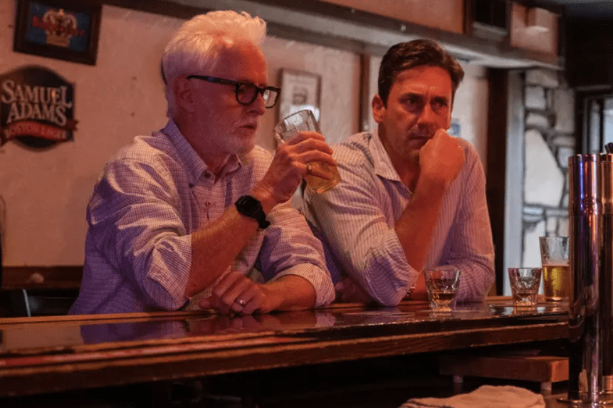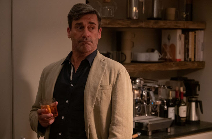 In case of John Hamm, who plays the titular hero of Mottola’s film, he is also aloofly charming and smarmy in his own way here as he did in the acclaimed TV drama series “Mad Men”, but he did a better job than Chase at least. He wisely lets himself often upstaged by a number of variously colorful supporting performers popping here and there around him, and his acting works best whenever his laidback character is caught off guard by another unexpected plot turn or revelation.