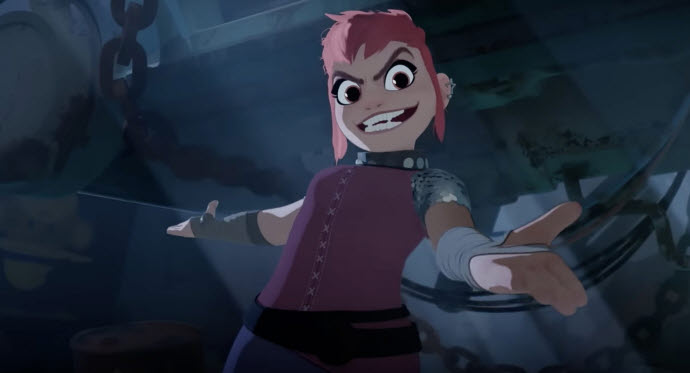 In his little secret place, Ballister tries to find any possible way to clear his name and then catch whoever is behind the assassination of the queen, and that is when a quirky girl named Nimona (voiced by Chloë Grace Moretz) enters the picture. She is quite eager to be his sidekick simply because she wants to have some fun and adventure besides having someone to hang around with, and Ballister reluctantly accepts her companionship even though he is still not quite certain about her.