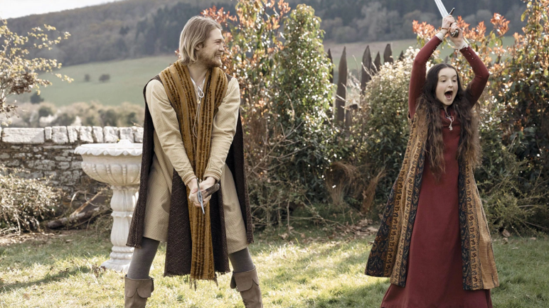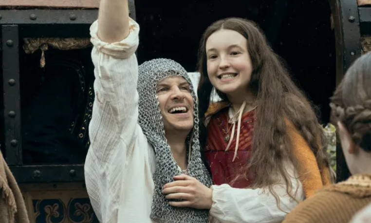 Mainly set in some rural feudal territory in England around the 13th century, the movie quickly establishes a little comfortable world surrounding Lady Catherine (Bella Ramsey), a 14-year-old noblewoman who has enjoyed her life and freedom as much as possible as your average plucky girl. At the beginning, we see her engaged in a big mud fight along with other kids in the area, and she does not mind at all about getting quite muddy just like others.