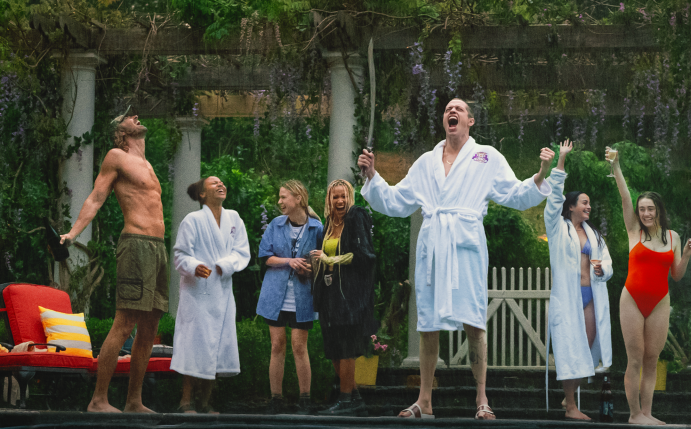 The two guys in question are Greg (Lee Pace) and David (Pete Davidson), who is incidentally the son of the owner of that big house. David later expresses his displeasure during his private conversation with Sophie, and we also come to gather that they and their friends actually do not know anything about Greg, who is much older than them but comes there anywhere just because he recently happens to get involved with Alice via an online dating application.
