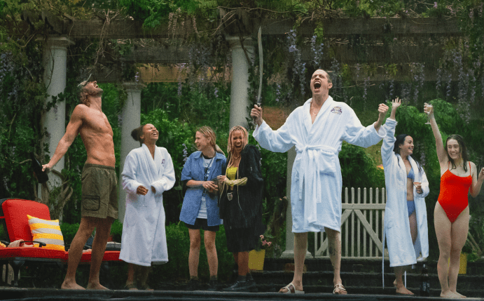 However, things do not look particularly promising because Sophie and Bee turn out to be virtually uninvited when they arrive at a big house located at that remote spot in question. Although her three female friends, Jordan (Myha’la Herrold), Emma (Chase Sui Wonders), and Alice (Rachel Sennott), welcome Sophie and Bee at first, it is clear to us that they do not like their fun time with two guys interrupted by Sophie and Bee’s appearance.