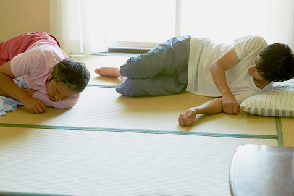 However, there come two little changes in Takeshi’s solitary daily life. When Kozo (Tsuyoshi Muro), a jolly guy living right next to Takeshi’s apartment, drops by Takeshi’s apartment for a little favor, Takeshi does not pay much attention to him, but, what do you know, Kozo subsequently comes into Takeshi’s domestic environment much more than expected. At first, it is simply taking a bath in the bathroom of Takeshi’s apartment, but then, what do you know, Takeshi eventually finds himself sharing a meal with Kozo, and Kozo also has Takeshi help a bit on his little garden full of several different vegetables.
