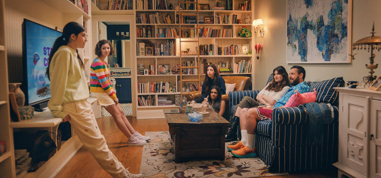 Here in this film, Sandler often willingly steps aside for his several family members to shine. As the young Jewish heroine of the film, his daughter Sunny Sandler gives a spirited performance which may lead her to more interesting stuffs in the future, and her older sister Sadie Sandler is also effective as the heroine’s wise-cracking older sister. As Sandler steadily holds the ground along with Idina Menzel as the heroine’s parents, Sandler’s wife Jackie Sandler plays the mother of the heroine’s best female friend, and ever-reliable character actor Luis Guzmán plays her converted Latino husband.