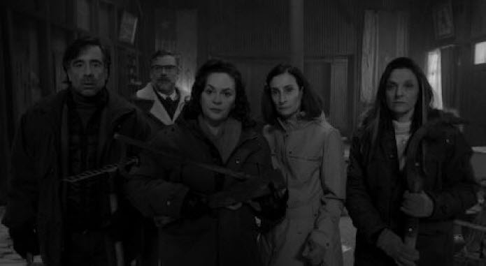 Naturally, the world outside Pinochet’s residence is shaken by this bloody killing, and that prompts his several human children to visit their vampire father, but, not so surprisingly, their father’s welfare is the last thing to concern them. Unabashedly greedy and opportunistic, they all want him to reveal any information involved with the family’s secret fortune gathered during their dictatorship era, but this turns out to be rather difficult due to Pinochet’s equally depraved wife and his longtime right-hand guy, who has incidentally served him for decades since the Russian revolution and surely enjoyed every brutal and sadistic moment of his during Pinochet’s dictatorship period.