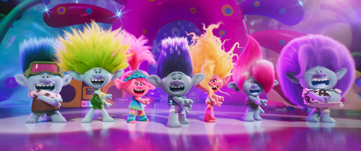 Animation film “Trolls Band Together” is shiny and colorful just like its two predecessors. I was not particularly excited about “Trolls” (2016) and “Trolls World Tour” (2020), but they were fairly watchable mainly thanks to its bright optimistic energy mainly fueled by its cute animation style and spirited musical numbers, and the same thing can be said about “Trolls Band Together”.