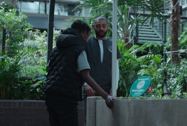 At least, the movie is supported well by its two good lead actors. Kane Robinson, who has been known mostly for his rapper career, remains as stoic and taciturn as required, but he and his young co-star Jedaiah Bannerman are engaging as their characters tentatively approach to each other along the story. In case of several main cast members in the film, Hope Ikpoku Jr. manages to bring presence and personality to his under-developed supporting character, and Ian Wright provides spirited levity as a local radio DJ not so far from Samuel L. Jackson’s character in Spike Lee’s “Do the Right Thing” (1989).