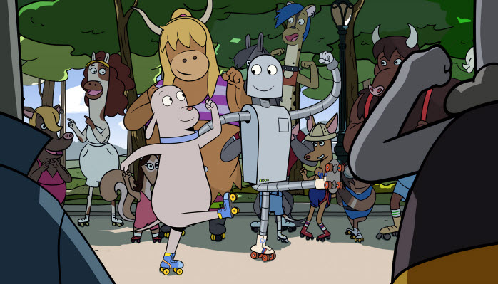 Once everything is fully assembled together and then Dog turns on its power switch, Robot eventually comes alive, and what follows next is a series of funny and heart-warming moments coming from their growing friendship. Although it is sometimes too naïve and innocent to our little amusement, Robot gradually becomes a best friend for Dog, and they come to spend time together here and there around the city. At one point, they go to a big public park not so different from the Central Park of New York City, and they have a lovely and fantastic moment as they try roller-skating with Earth, Wind & Fire’s classic pop song “September” being played on the soundtrack.