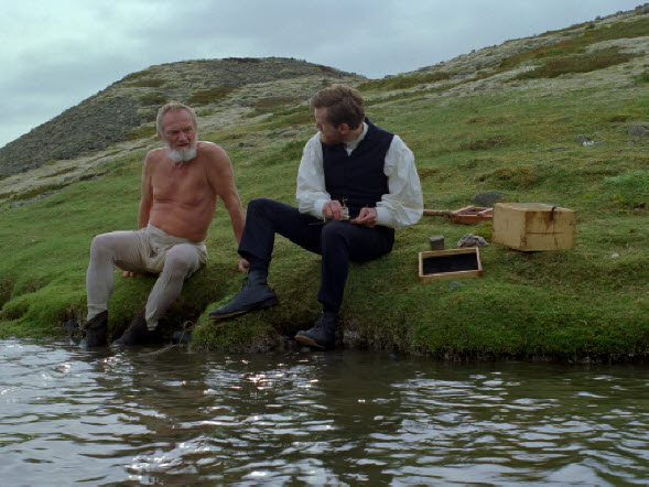 Among a number of stuffs Lucas brought from Denmark, there is an old big camera he is going to use for recording the land and people of Iceland from time to time. Just like the photographs of his camera, the movie is presented in the film ratio of 1.33:1 coupled with some old-fashioned visual touches, and cinematographer Maria von Hausswolff’s camera often sticks to its static position unless it pensively pans across the spaces occupied by the main characters. As they go deeper into the wasteland area of Iceland, the movie gives us a number of overwhelmingly vast and bleak landscape shots to behold, and this further accentuates its hero’s growing emotional turmoil along the story. No matter how much he tries to stick to his faith in God, Lucas finds himself pushed closer and closer to his breaking point, and the mood becomes a bit feverish when something inevitable happens to him in the end.