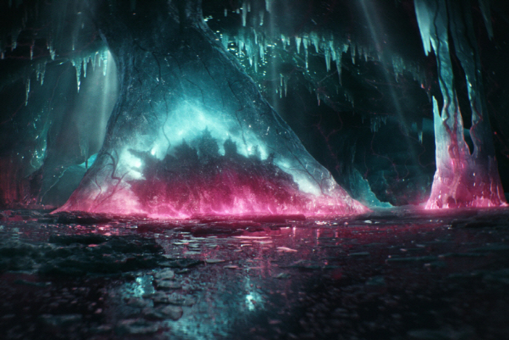 At least, the movie amused me to some degree with more preposterous stuffs on the way. While Godzilla occasionally makes a big news around the world just for reminding the world that who the boss is, Kong freely explores his vast underground world called “Hollow Earth”, and we get a little humorous moment when it happens to have a dental problem, which is later fixed by those dedicated employees of a big global organization called Monarch.