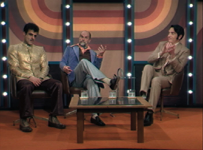 The main part of the movie, which is deliberately shot in the low-quality video of 1.33:1 screen ratio, cheerfully follows the familiar format of the late-night talk shows in the 1970s. After the announcement of several special guests to appear, Delroy makes a humorous appearance as expected, and that is followed by the appearance of his first guest of this night, who gives a fairly good opening performance for Delroy and his audiences as your typical psychic.