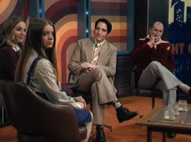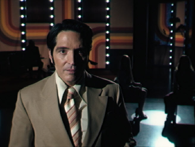 Before following what happened during the 1977 Halloween episode of a fictional late-night talk show, the movie gives a brief background information on Jack Delroy (David Dastmalchian), the host of that fictional late-night talk show. There was a time when he and his show seemed to be going up to the level of “The Tonight Show Starring Johnny Carson”, but, alas, he and his show somehow remained below that top level even though he was willing to try anything for drawing more primetime viewers out there. As a matter of fact, he even did something quite shameless involved with his dying wife not long before she passed away, just because that would guarantee a higher rating for his show.