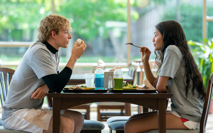 After the opening scene where it skillfully sets its overall tone, the movie quickly establishes how things have not been going that well for Art Donaldson (Mike Faist) and his wife Tashi (Zendaya). Although he has been quite a prominent professional tennis player in US for last several years, Art may have to consider retirement seriously due to a series of rather dissatisfying tournament results at present, but he is willing to try more with the full support and encouragement from his wife, who was incidentally a very promising young tennis player before she had to retire due to an unfortunate accident. After her retirement, she began to pursue the career of a tennis coach, and, not so surprisingly, she has been her husband’s coach since their marriage.