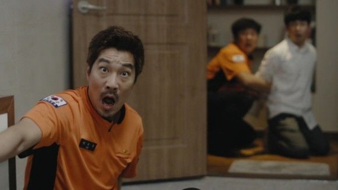 Now this looks like a fairy good setup, but the screenplay by director Choi Yun-ho and his co-writer Jangjak, who has been known for several online graphic novels, does not advance much from that. For instance, it does not provide much explanation on that hand at all, and it is also rather vague about how the hell that hand ended up being in the bathroom of Bong-soo’s apartment. Later in the story, the lead of the paramedic team reveals one certain weird incident which occurred some time ago in Bong-soo’s neighborhood, but, to our frustration, the movie never makes any clear connection between that incident and the origin of that hand, and we come to observe the whole situation without much care or interest.