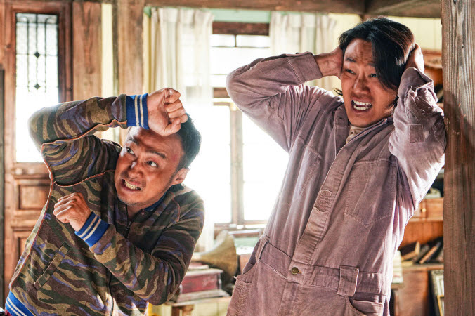 Around the point where it pulls all the stops for more horror and laugh, the movie becomes rather shaky with low-budget special effects, but it continues to amuse us mainly thanks to the solid comic performances from its several main cast members. As the South Korean variation of hillbilly characters, Lee Sung-min and Lee Hee-jun look convincing in their deliberately shabby appearance, and their comic chemistry is as effective as Tyler Labine and Alan Tudyk in the original American version. Jae-pil and Sang-goo are sometimes silly and pathetic, but they somehow come to us as likable guys, even though we shake our head for their total obliviousness to how they do not look as handsome as they think.