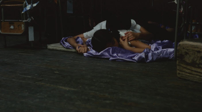 Even at that point, the movie firmly maintains its phlegmatically sobering attitude while refusing to allow any easy way out for its adolescent main characters. When Mikami and his several classmates get themselves trapped inside the school as the typhoon is raging more and more outside, they feel more frustrated than ever, but their following attempts for any emotional ventilation do not give them much catharsis at all, and their drab reality is about to return on the very next day.