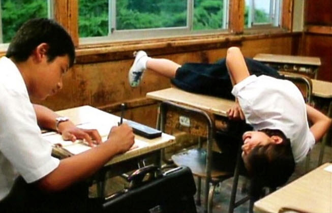 As the next day begins, we get to know more about the girls, the boy, and his two male classmates. It is clear to us that one of the girls, Rie (Youki Kudoh), likes one of the boy’s two friends, but Mikami (Yuichi Mikami) is not particularly interested in being more than a close friend to Rie, mainly because he is more occupied with studying more for going to a good high school later.