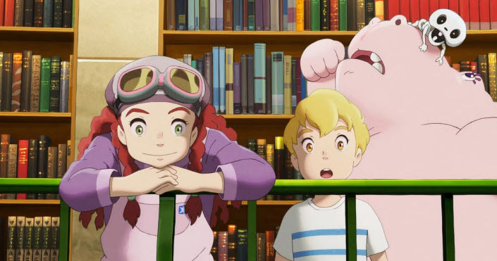 Needless to say, the film fills the screen with a heap of colorfully wondrous stuffs and details as Ludger gets to know more about his new world and its rules via Emily and his other new friends including a big pink hippopotamus named Snowflake (voiced by Mitsuaki Kanuka). Whenever the library is silent and empty at night, Emily and her fellow imaginary figures make a little fantasy town of their own, and it looks like nothing bad can happen as long as they stay together in this little haven of theirs.