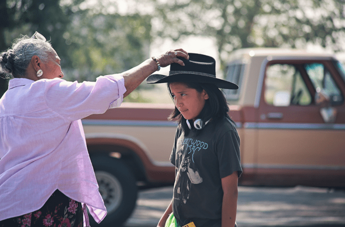 Once its few main characters are established, the screenplay by director/writer Billy Luther, who also serves as the narrator of the film, leisurely rolls its story and characters from one episodic moment to another. There is an amusing scene where Benny happens to have a little honor of making a baby cousin laugh for the first time, and then we also get a touching moment as he gets to know more about Grandma’s traditional craftsmanship. As spending more time with her, Benny comes to respect and care about Grandma more than before, and he also becomes able to speak her Navajo language to some degree.