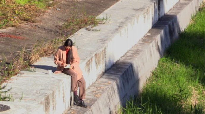 Anyway, they all eventually go to a little nearby restaurant which happens to be located by a local stream, and, like many of Hong’s movie characters, they drink and talk a lot for a while. Although their conversation often feels a bit too superficial without revealing that much about themselves, the performers fill this conversation with considerable spontaneity at least, and you may wonder whether they actually drank during the shooting just like many performers allegedly did during the shooting of Hong’s films.