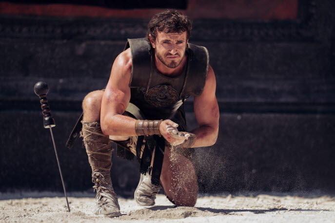In case of the other cast members in the film besides Mescal and Nielsen, most of them do not have much fun with their respective parts either. While Pedro Pascal, who can also be very compelling just like Mescal, seems constantly depressed about not getting any juicy moment to chew, Joseph Quinn and Fred Hechinger, who play the twin emperors, frequently go over the top without much control or impact at all, and you may come to miss more of Joaquin Phoenix’s Oscar-nominated villain performance in the previous film. In contrast, Denzel Washington, who previously collaborated with Scott in “American Gangster” (2007), often elevates his materials with not only his own star presence but also some sense of humor and intelligence which the movie desperately needs, and we are reminded that he can still be as cunning and ruthless as he was in his gritty Oscar-winning performance in “Training Day” (2001).