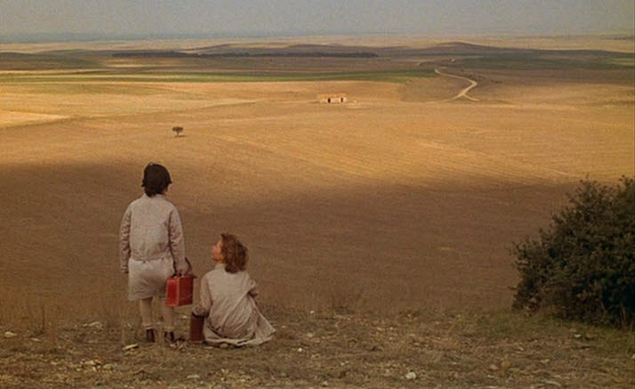 The main background of the movie is a small, isolated village located in the middle of the Castilian plateau of Spain during its post-Civil War period. At the beginning of the story, the whole town is getting quite excited by the upcoming screening of classic American horror film “Frankenstein” (1931) by a mobile cinema, and we soon see many adult and child audiences watching that film at their little town hall.
