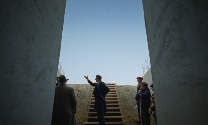 As the screenplay by Corbet and his co-writer Mona Fastvold steadily builds up the story and characters with more details, the movie constantly impresses us with a number of stunning visual moments to be appreciated. Cinematographer Lol Crawley did a superlative job of filling the screen with vivid and realistic period atmosphere (The movie was actually shot via the VistaVison process and cameras for accentuating that, by the way), and the result is seamlessly mixed with the occasional archival footage clips from the 1950-60s. The editing by Dávid Jancsó is precise and efficient in maintaining the narrative pacing throughout the film, which is incidentally more than 3.5 hours including the 15-minute intermission part. The score by Daniel Blumberg feels a little too simple and restrained, but it still plays a crucial part in setting the tone of several key scenes in the movie.