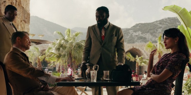While March-Phillipps and his colleagues go through another violent adventure on their way, the movie also focuses on the two British secret agents operating in that island. Disguising himself as a fairly trustworthy broker/businessman, Richard Heron (Babs Olusanmokun, who looks a lot more dapper compared to his brief appearance around the end of Denis Villeneuve’s “Dune” (2021)) assists a female agent named Marjorie Stewart (Eiza González), and he arranges a meeting between her and Heinrich Luhr (Til Schweiger, whom you may remember for playing a crucial supporting role in “Ingourious Basterds”), a sadistic Nazi Germany officer supervising the safety of that cargo ship.