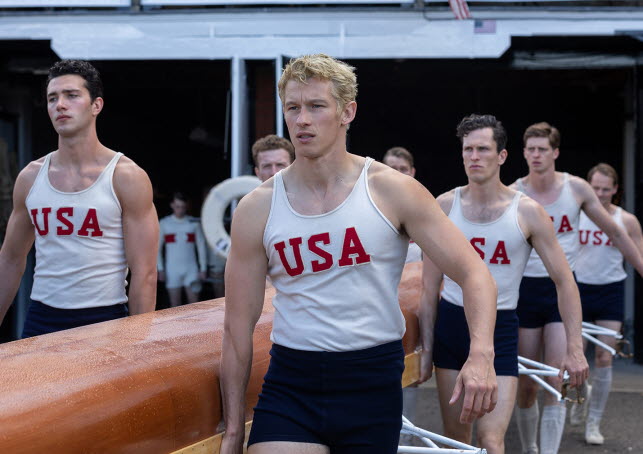 At first, the movie starts with the introduction of Joe Rantz (Callum Turner), a plain lad studying at the University of Washington in 1936. Like many other people during that time, Rantz is quite poor to say the least, and we see his daily struggle between his college study and his frequent hardships outside the university. While he really wants to graduate and then become an engineer someday, he is constantly reminded of his current economic status everyday, and things become more desperate for him when he must pay more money for his college education.