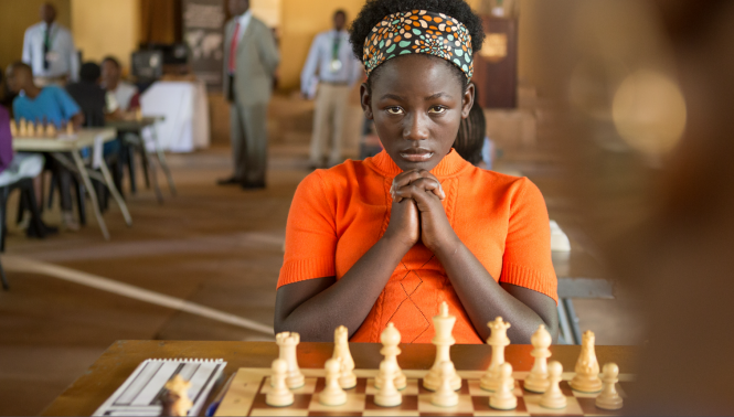 The story mainly revolves around a 10-year-old girl named Phiona Mutesi (Madina Nalwanga), and the early part of the film focuses on how things have been difficult and desperate for her and her family. After losing her husband and eldest child some years ago, Phiona’s mother Nakku Harriet (Lupita Nyong’o) has struggled a lot with the following economic hardship, and Phiona and her younger brother often have to sell maize on the streets of Katwe, a slum neighborhood outside Kampala, along with their mother for supporting their family as much possible.