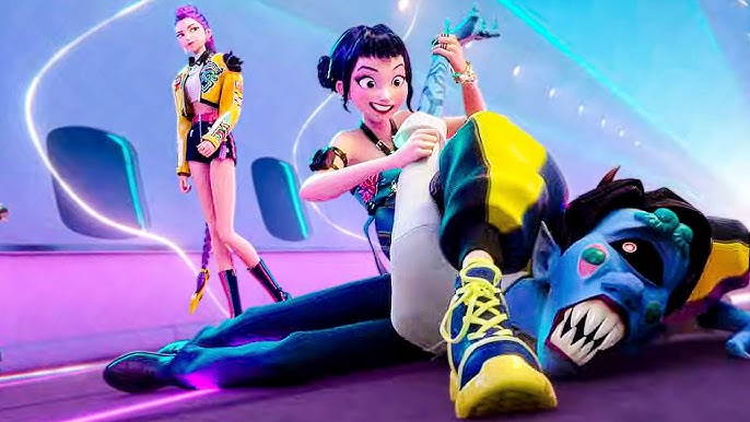 The story is basically a mix between superhero origin story and show business melodrama. At the beginning, we are introduced to a very popular female K-Pop trio group who are actually the latest generation of the time-honored singer warriors fighting against the demons of the underworld, and the opening sequence shows their latest battle which happens right before the last concert of another world tour of theirs.