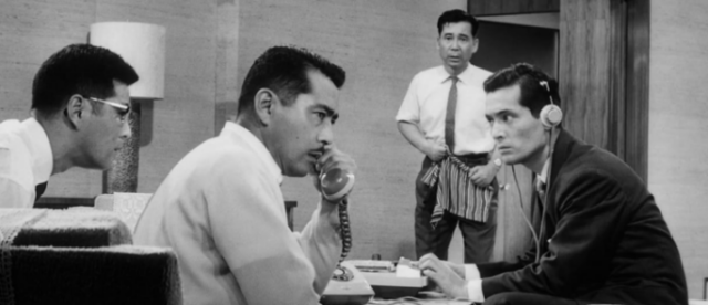 The movie opens with a little private business meeting between a wealthy businessman named Kingo Gondo (Toshiro Mifune) and his several business associates. They want to persuade Gondo to help them taking over their big shoe company, but it later turns out that Gondo has the other idea behind his back. As a matter of fact, he virtually bets all of his assets on this for not only getting richer but also taking over the company for himself.