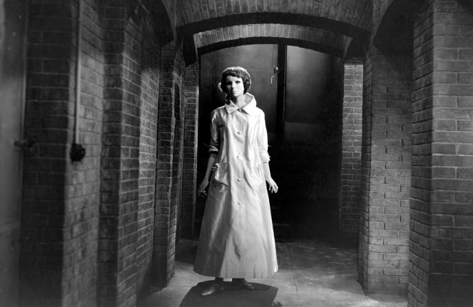 While it is relatively less disturbing in comparison, “Eyes Without a Face” slowly creeps into our mind via its clinically nightmarish atmosphere coupled with a lot of noirish visual touches to be observed here and there throughout the film. The cinematography by Eugen Schüfftan often feels unnerving in its stark contrast of light and shadow; the interior spaces of the doctor’s house are increasingly creepy and insidious along the story, and Christiane’s mask sometimes looks like a sort of second skin as becoming a part of her miserable existence.
