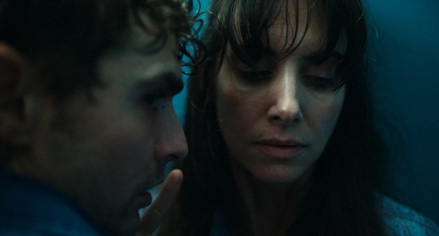 The screenplay by director/writer Michael Shanks, who incidentally made a feature film debut here after making several short films, takes its time as the situation of its two lead characters becomes more alarming with a series of ups and downs. While they become more disturbed by their increasingly sticky circumstance, they also come to sense more of the irresistible force driving them toward each other more and more, and the movie has some nasty fun with that from time to time.