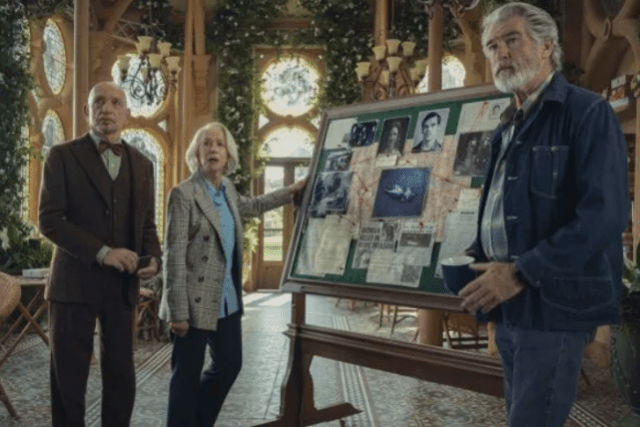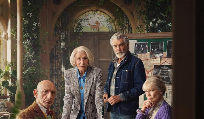 The main background of the story is the home for old retirees somewhere in UK, and the opening part introduces the four members of “The Thursday Murder Club”: Elizabeth Best (Helen Mirren), Ron Ritchie (Pierce Brosnan), Ibrahim Arif (Ben Kingsley), and Joyce Meadowcroft (Celia Imrie), who joins the group after a former member of the group was recently sent to the hospice section due to her worsening illness. The main focus of their interest has been old unsolved cases in the past, and the latest one happens to be about the very suspicious death of one young woman, who was probably killed by her boyfriend shortly before he was vanished.