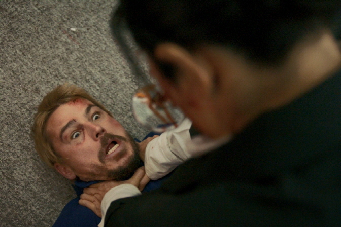 The plot thickens a bit as Reyes’s ex-girlfriend calmly and coldly handles the increasingly tricky situation for her and her agency, but the movie thankfully keeps focusing on Reyes’ ongoing plight. While he is cornered by his numerous opponents in one way or another, he also manages to have a few people willing to help him, and there is a very outrageous moment when he encounters a trio of unexpected allies coming to help him later in the story.
