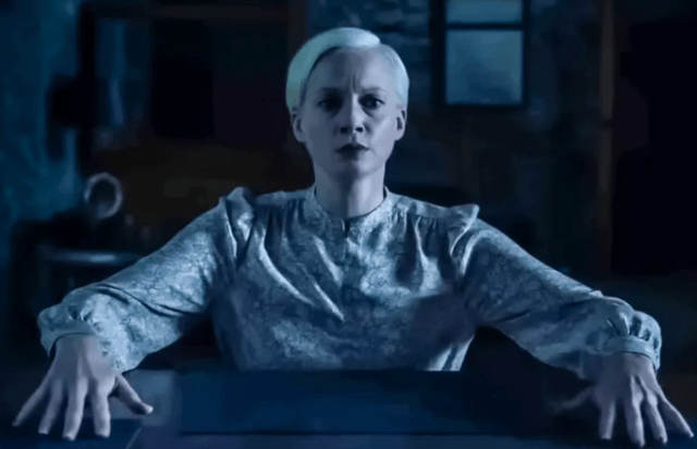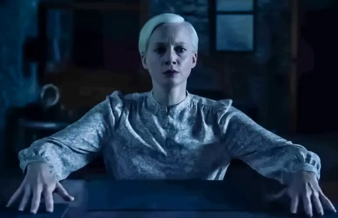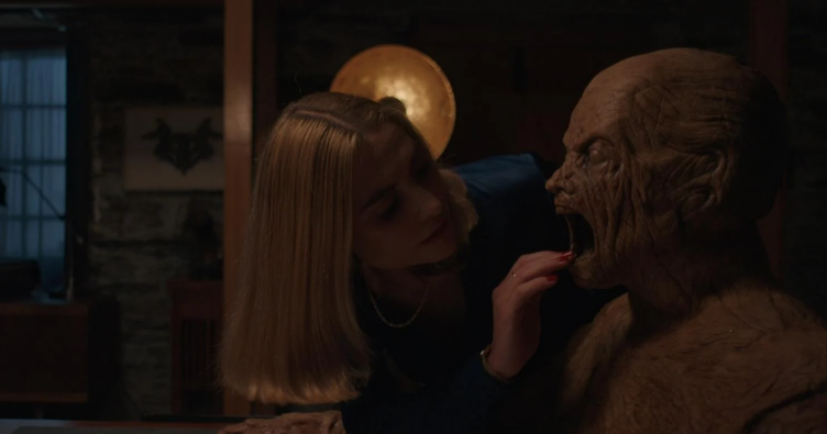 Anyway, Ted visits Dani’s visually impaired twin sister Darcy, who is also played by Carolyn Bracken. Darcy has run a little antique shop full of old odd things which are actually cursed according to her, and this may remind you of that spooky storage room often shown in “The Conjuring” (2013) and its several sequels. At the time of Ted’s visit, Darcy happens to be handling the latest addition to her rather creepy collection, and she willingly tells a bit about its sinister backstory, but Ted does not believe that much as a man of reason and science.